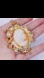 Features: ornate gold tone frame; resin cameo portrait; sparkling rhinestones; pendant–brooch combination; solid construction consistent with designer's reputation