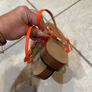 Gently worn Amedeo Canfora Orange Rhinestone Handmade Sandals women’s size 8. Neon Orange, handmade in Capri Italy, heavy rhinestone straps, thong style, patent leather ankle strap, natural leather sole and bottoms. Offers accepted!
