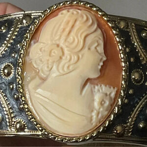 Amedeo Carved Cameo Enamel Hinged Statement Bangle