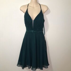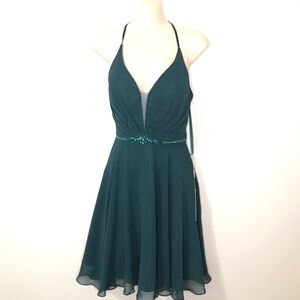 Amelia Couture Emerald Short Evening Gown Chiffon Fit Flare Belted Dress 2 NEW