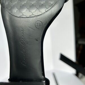 Amelia Grace Black Tortoise Ankle Strap Block Heel Dress Sandals