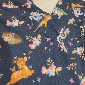 *Adorable Disney Bambi, Thumper, Flower & Friend Owl with Butterflies & flowers on a dark blue dotted background - Vibrant colors