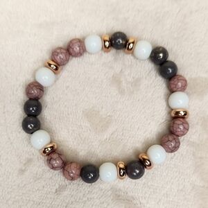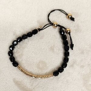 This chic set includes three unique pieces, all designed to add style to your look whether worn alone or as a set. The set features two real-glass beaded stretch bracelets - one accented with rose gold charms and one with silver charms plus a bracelet with shiny black beads accented with gold and a bolo slide adjustable clasp