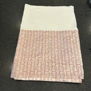 Measures approx: Crib Skirt: 28" wide x 52" long. Drop length: 16"