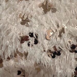 Amelia’s Boutique Cream Sequin & Feather Short Sleeve Crew Neck Top, size M