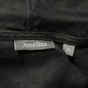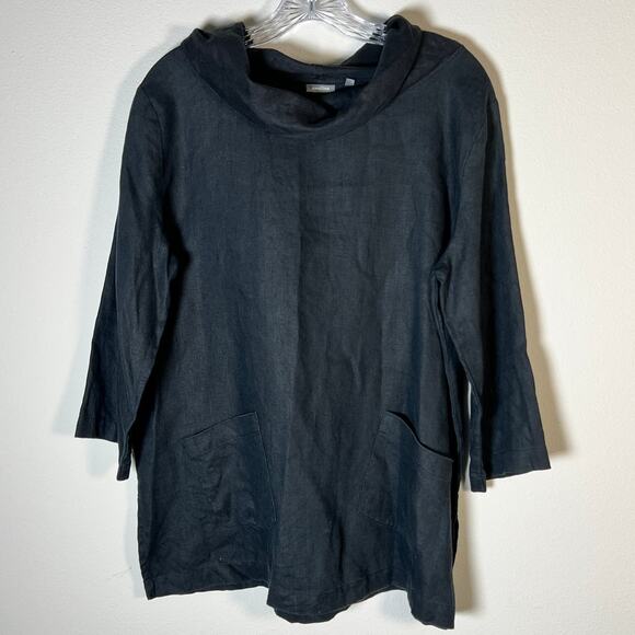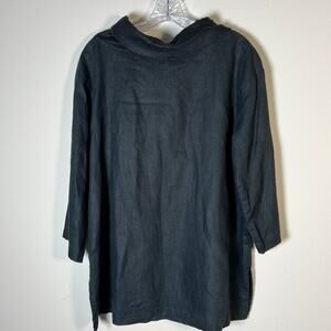 Amelline 100% Linen 3/4 Sleeve Cowl Neck Blouse Top Women's Size Medium Black