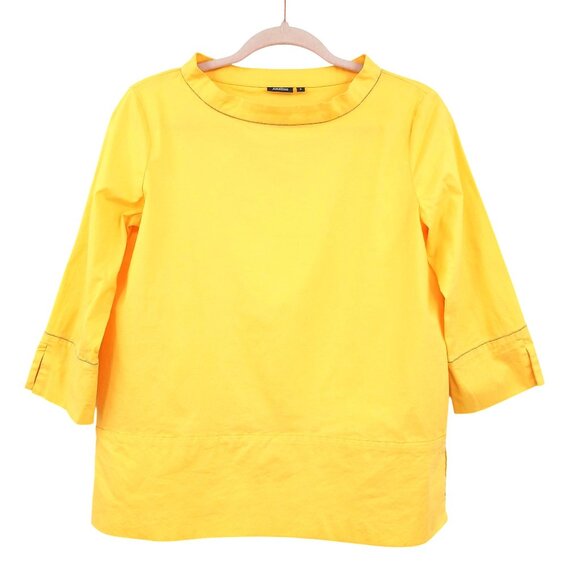 This top offers a vibrant yellow hue, crafted from a soft cotton blend, perfect for casual or work wear.