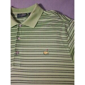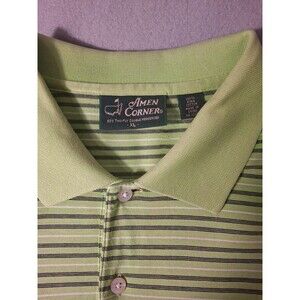 Amen Corner Polo Shirt XL Green Striped Masters Pima Logo Short Sleeve Preppy