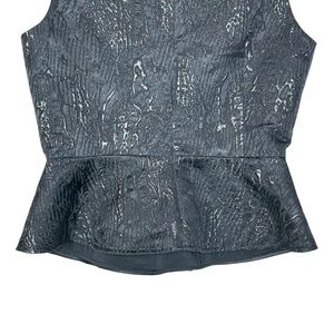 Amen Couture Black Beaded Jacquard Peplum Cocktail Top | Size 4