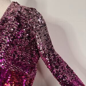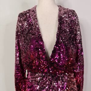 Amen Pink Ombre Sequin Mini Dress Long Sleeve Plunge Party Cocktail 42 NWT Glam