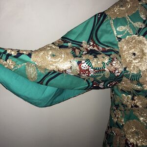 Amenapih Paris Green Teal Gold Beaded Kimono Style Mini Dress Sz FR 2 US 6.