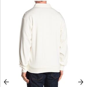 Size L, Layer up in this comfortable quarter zip sweatshirt featuring an embroidered logo for signature style. 30” length (size L)Mock neck Long sleeves Front partial zip closure Embroidered front logo Knit construction Ribbed cuffs and hem 100% cotton Machine wash warm Made in Turkey Model’s stats for sizing: 6’2" height, 31" waist. Model is wearing size L