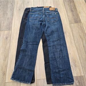 Get ready to rock your casual look with these American Eagle Original Straight Jeans in a classic duo of denim shades! One pair boasts a rugged, lightly distressed light wash, perfect for that laid-back, weekend vibe, while the other features a rich dark wash that's sleek enough for a night out. Crafted for comfort and style, these jeans are your go-to for everything from backyard barbecues to spontaneous road trips. With size 29 X 30, they fit like a charm and are versatile enough to pair with any shirt you throw on.