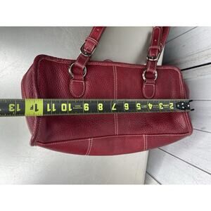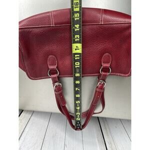 Ameri Leather Red Belt Stitched Leather Satchel Purse Handbag Pebble Top Handle