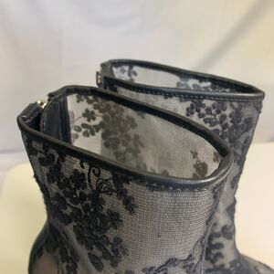 Ameri Vintage Sheer Embroidery Mesh Boots Black Floral Block Heel Size M US 7