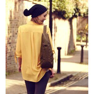 AmeriBag Healthy Back Bag 17" Brownish Distressed Nylon Small Sling Unisex EUC