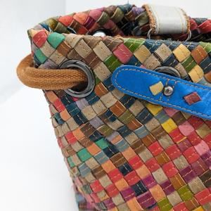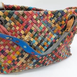 Check out this woven leather zip top tote bag from AmeriLeather in multicolors.