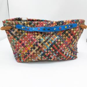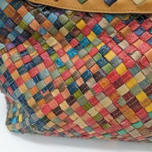 AmeriLeather Cybil Woven Satchel Multicolor Leather Double Handle Zip Top