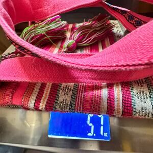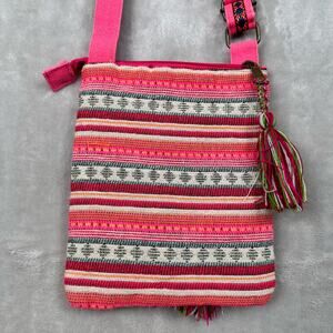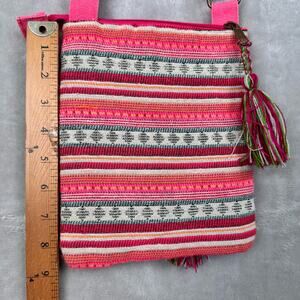 America And Beyond Crossbody Purse Pink Striped Embroidered Tassel Boho Festival