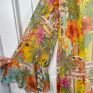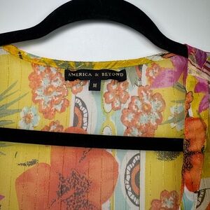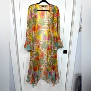 America & Beyond Boho Blissful Kimono Cover Up Size Medium Flared Sleeves Floral in great condition