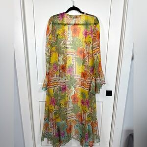 America & Beyond Boho Blissful Kimono Cover Up Size Medium Flared Sleeves Floral
