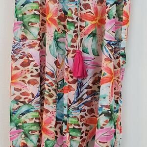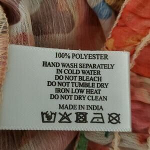 Smocked elasticized waist. Attached tie with tassels. Wide pant legs. Pant legs have high slits on the outside. Waist 14". Rise 13". Inseam 27". MEASUREMENTS ARE APPROXIMATE