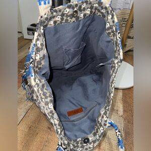 America & Beyond Multi Color Tote W/fringe And Brass Medallions 15”x18”