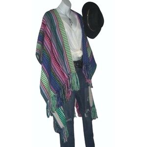 America & Beyond Poncho Blanket Southwestern Bohemian Shawl Cardi Duster Boho M
