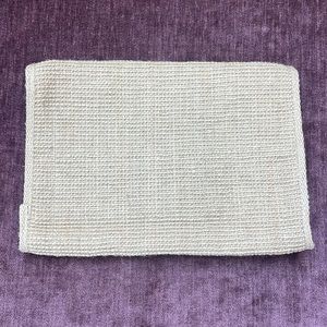 America & Beyond (A&B), 100% jute clutch purse, Green palm frond accents , Wooden bead and loop closure , Approx 12"x9", Excellent preowned condition.