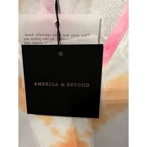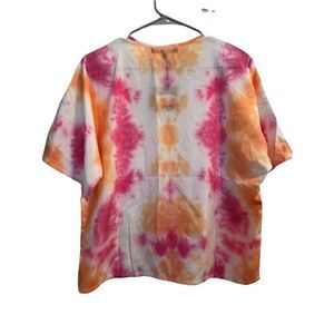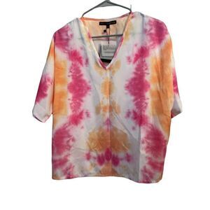 America & Beyond Polyester Top Small Pink Womens Tie Dye V Neck Short Sleeve New