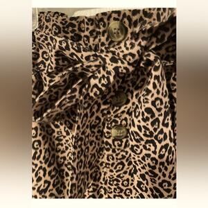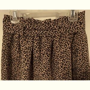 This skirt from American Eagle Outfitters is a must-have for any fashion-forward woman. The cheetah print pattern and adorable paper bag style make it perfect for any occasion, whether it's a party, casual day out, or even for workwear. The skirt features a button closure and is made from a comfortable polyester and cotton knit fabric. It has a high-rise waist with an elastic band, and a detachable "belt" to tie for a comfortable fit, and fun look. It comes in size XS and is machine washable. The skirt is also lined and suitable for all seasons. Add a touch of classic style to your wardrobe with this skirt. From a clean, smoke- free home.