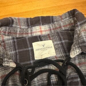 America Eagle Outfitters Plaid Lace-Up Shirt Distressed frayed oversized fit M