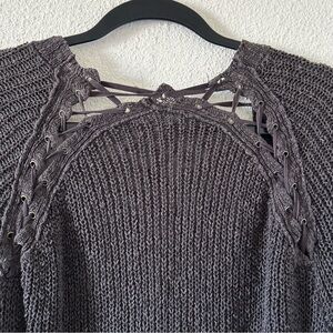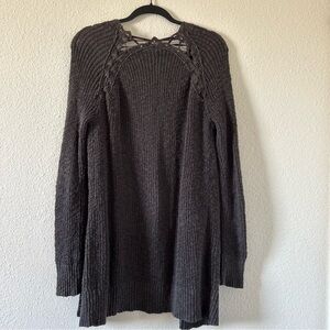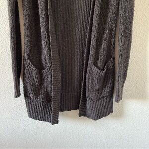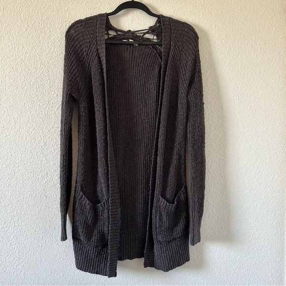 America Eagle Outfitters Women’s Knit Cardigan Small Brown Longline Witchy / stretchy/ open front/ cool lacing detail at back / pockets /