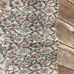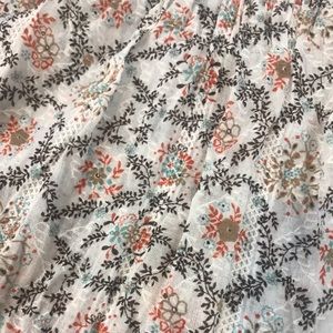 Lightweight, colors are ivory, dark chocolate brown, burnt orange & aqua teal blue. Has silver bead & sequins on the bust area... a few of them are missing.
