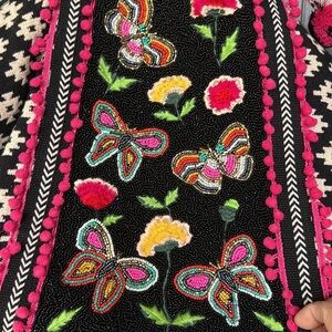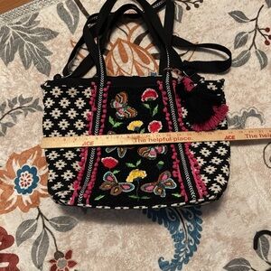 America and Beyond Butterfly Embroidered Black and Pink Tote Bag