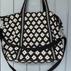 Stylish embroidered tote bag in black and pink. Perfect for adding a pop of color to any outfit.