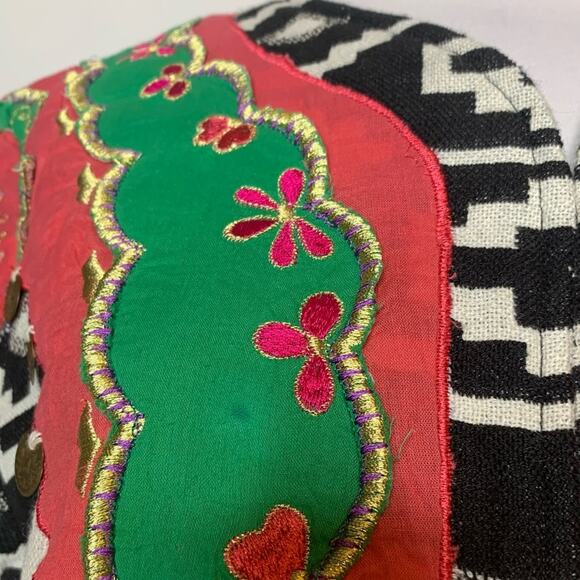 Embroidered patchwork details, coins sewn on. Super unique piece