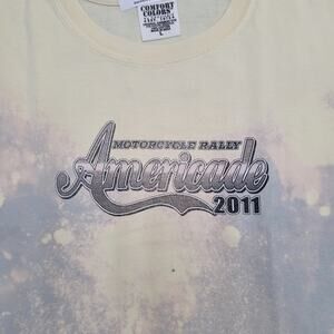 AMERICADE MOTORCYCLE RALLY SHIRT, 2011 LAKE GEORGE NY, TIE-DYE BAGGY TEE, CROPPED MOTORCYCLE SHIRT, LARGE RALLY SHIRT, BIKER EVENT APPAREL, RETRO MOTORCYCLE FASHION, CLASSIC RIDER TEE, MOTORSPORTS MERCH, HARLEY RALLY STYLE