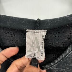 American Age Women's Top Size Medium Black Long Sleeve V-Neck Lace Back Detail 90s Grunge Layering Edgy Streetwear