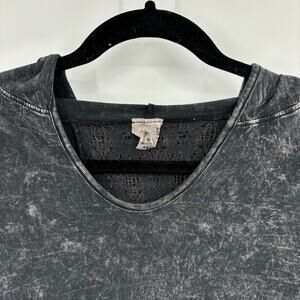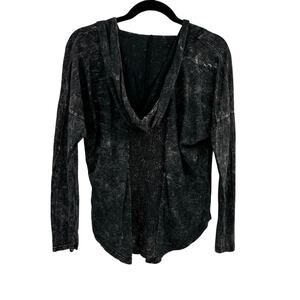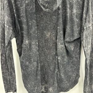 American Age Hooded Top Medium Gray Long Sleeve V-Neck Lace Back Detail Grunge