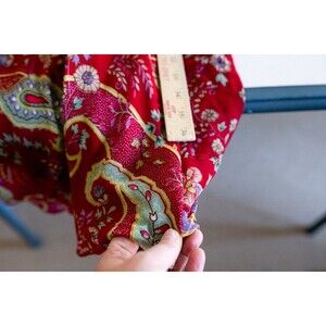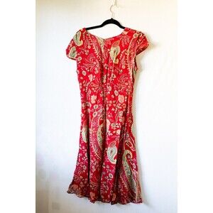 The American Angel 8P Red floral paisley dress is a Y2k-inspired piece that exudes a fairy-like charm. Made in India, this shift, A-line dress features a round neck, short sleeves, and a collarless design. The red floral paisley pattern adds a touch of whimsy to the midi-length dress, perfect for those who appreciate unique and vintage-inspired fashion. Ideal for petites, this dress is a standout choice for women looking to make a statement with their clothing.
