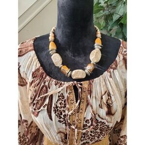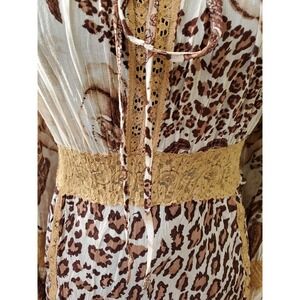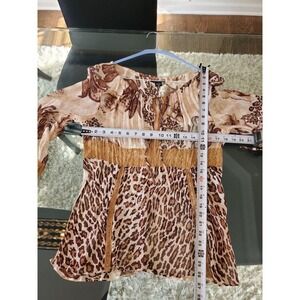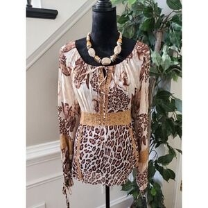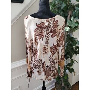 American Angel Women's Beige & Brown Rayon Round Neck Long Sleeve Top Blouse 1X.
