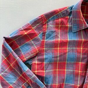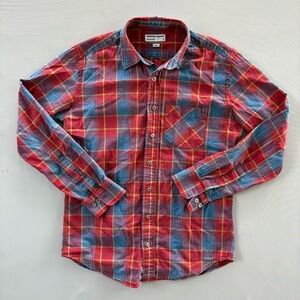 American Apparel Button Down Long Sleeve Red & Blue Plaid Cotton Unisex Shirt