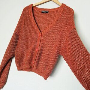 American Apparel chunky knit cardigan in metallic burnt orange color.