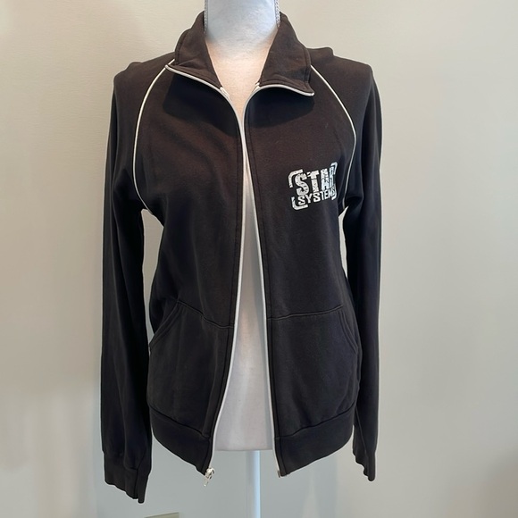 Small. Two front pockets. Somewhat faded. Width under arms 36, length from pit to hem 13.5