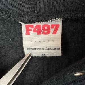 American Apparel F497 Mens Black Solid State Record Graphic Print Zip Hoodie