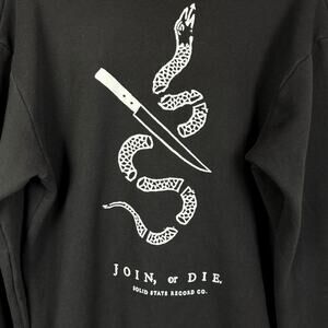 Graphic "Join or Die" snake design on back