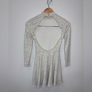 American Apparel Heather Gray Neck Button Long Sleeve Skater Dress (S)