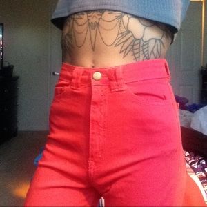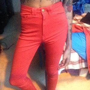 ‼️Not a double listing! Somehow accidentally bought two of the same jeans that don't fit me, lol. Trying to get rid of them both now‼️American Apparel Four-Way Stretch High Waist Side Zipper Jean in Balloon Red. Size 24/25 and new with tags! Never worn and no visible defects. $28 shipped on Mercari. 🚫 No trades, only selling. 🚫