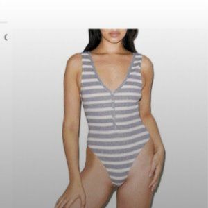 American Apparel Horizonal Striped Fitted Vintage Style Bodysuit Small